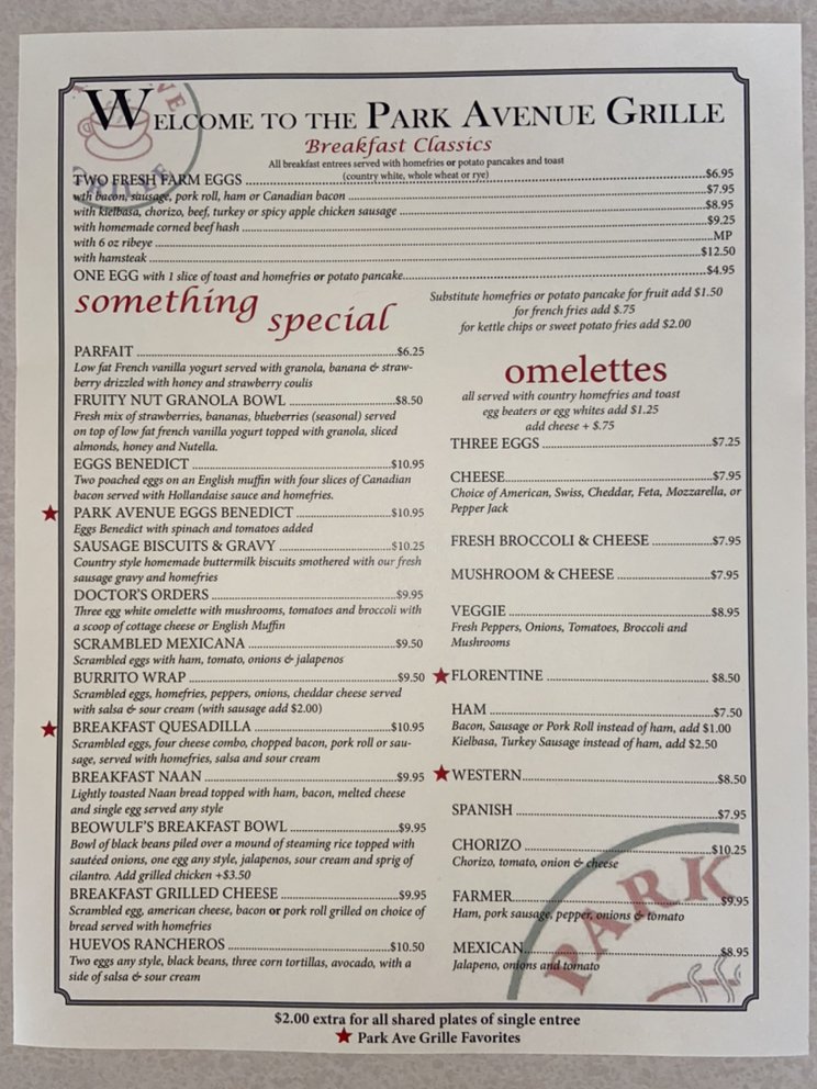 Welcome to Park Avenue Grill, a delightful gem nestled in Freehold, NJ, serving up a delectable American breakfast and brunch menu. This family-run establishment prides itself on offering high-quality, freshly prepared dishes that cater to a variety of tastes.